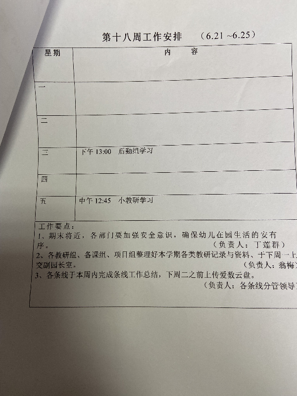 2020学年第二学期第十八周工作安排